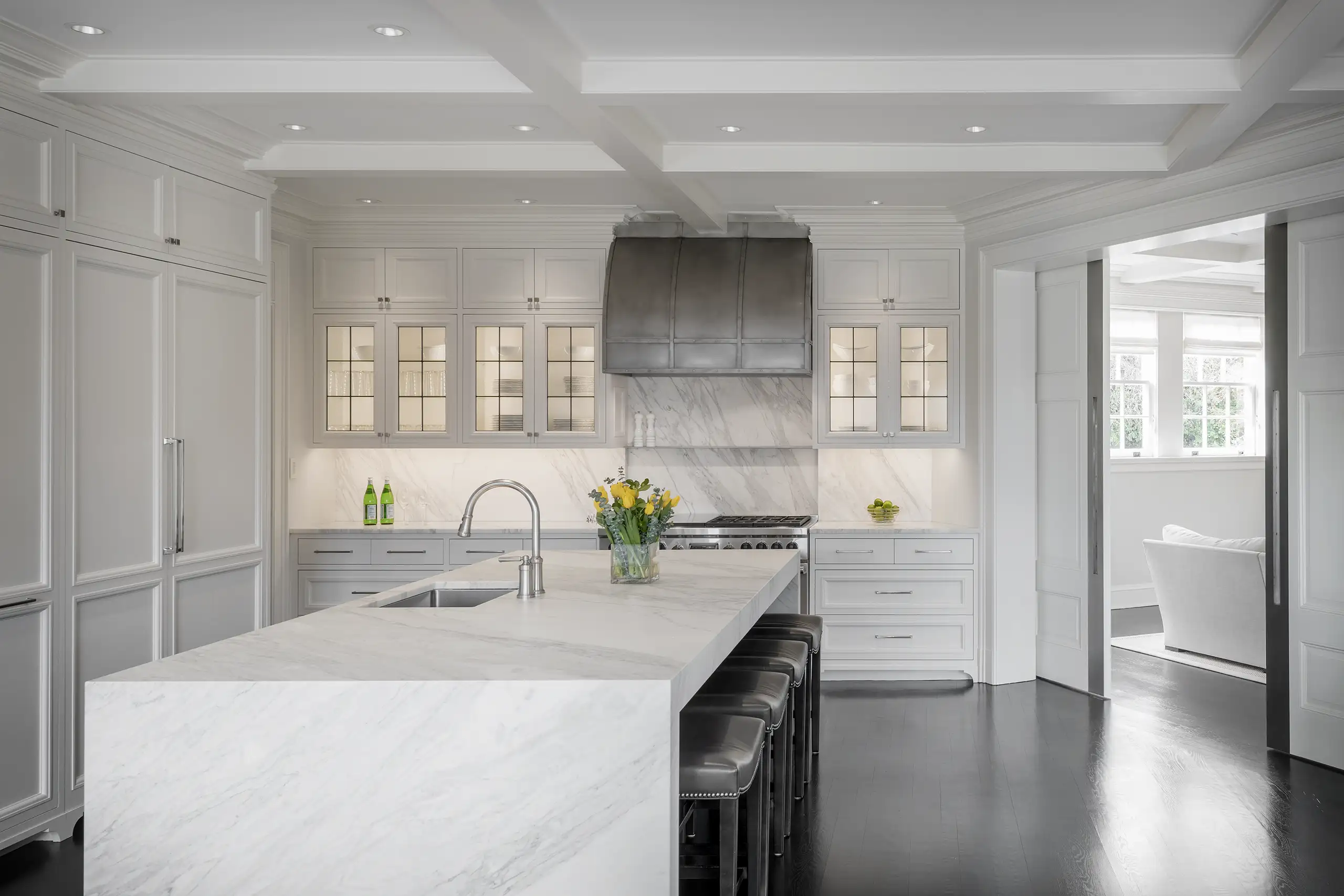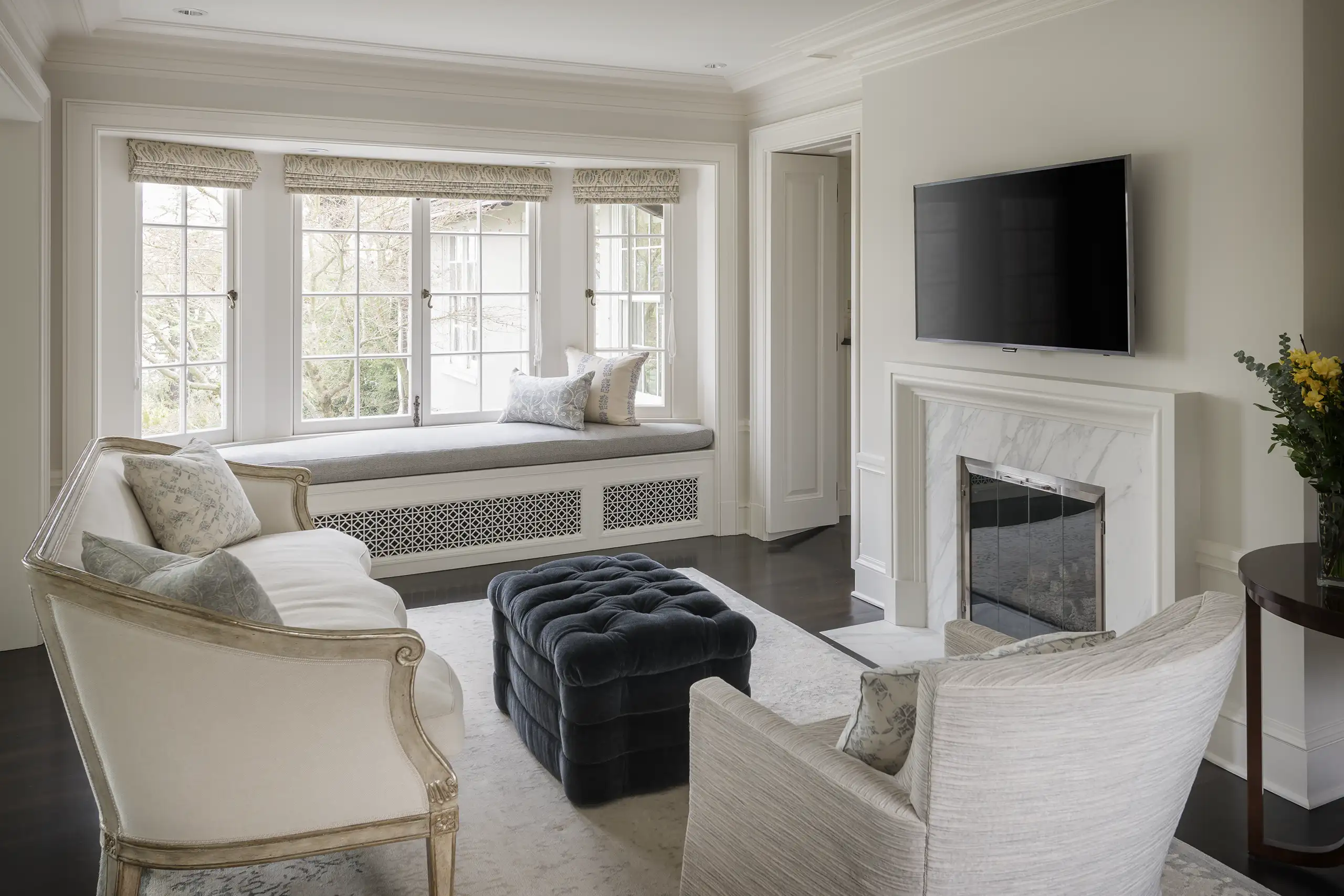The transformation emphasizes natural light, enhancing the connection between interior spaces and elevating views throughout the home. Thoughtfully designed circulation pathways facilitate smooth transitions, enriching the overall experience of the residence. Curated millwork and exquisite finishes celebrate the architectural heritage while seamlessly integrating contemporary elements. This careful balance of old and new not only honors the home’s original character but also creates environments that encourage family interaction and connection.