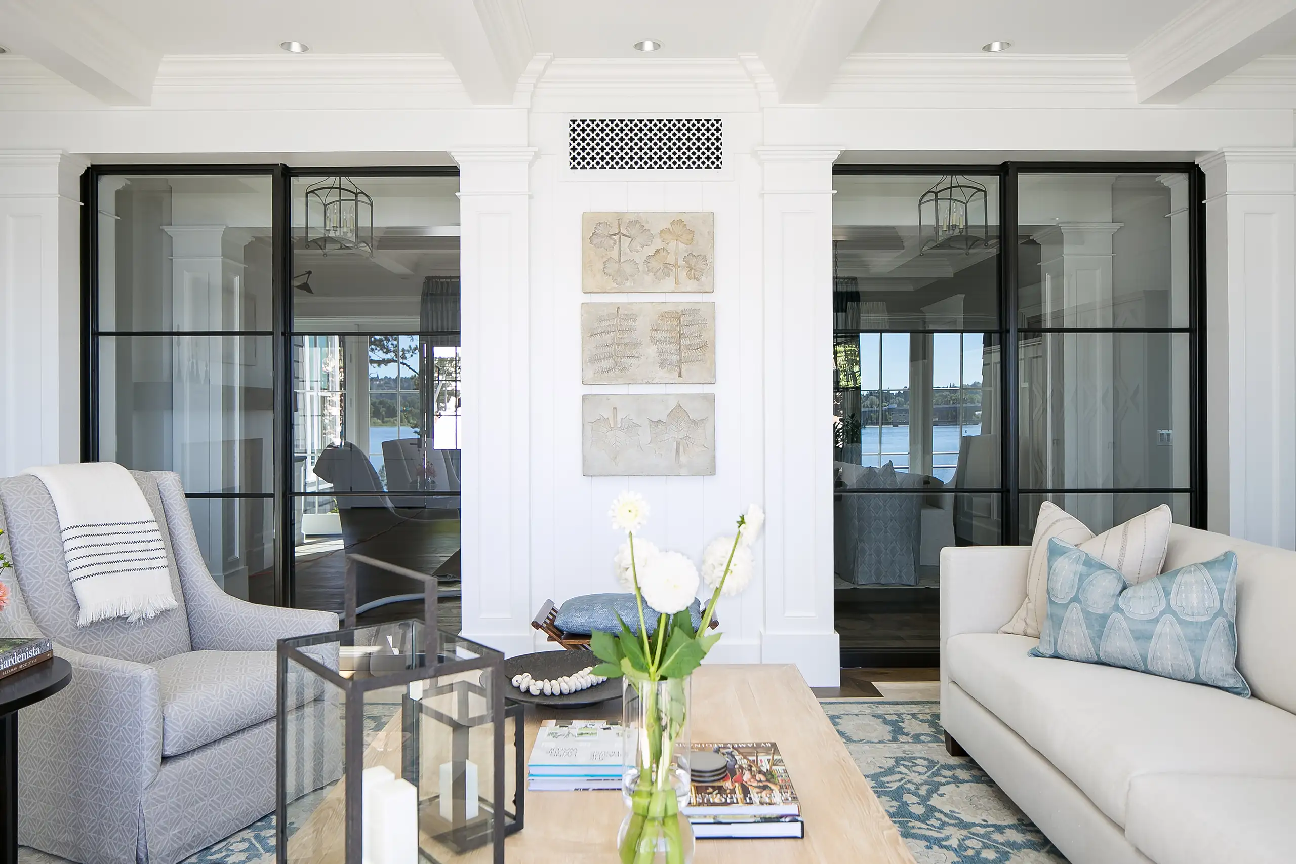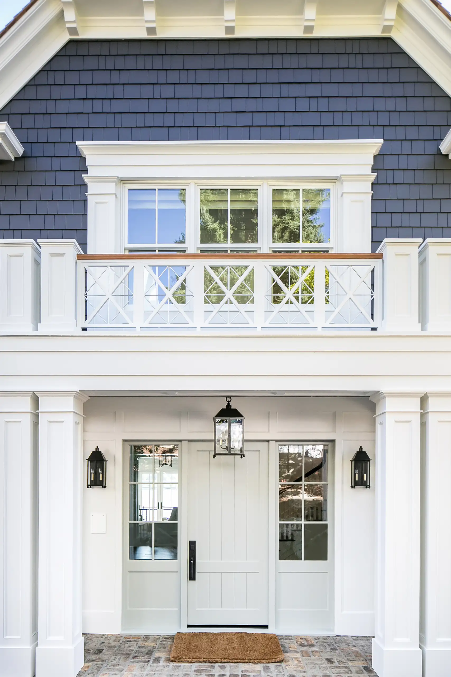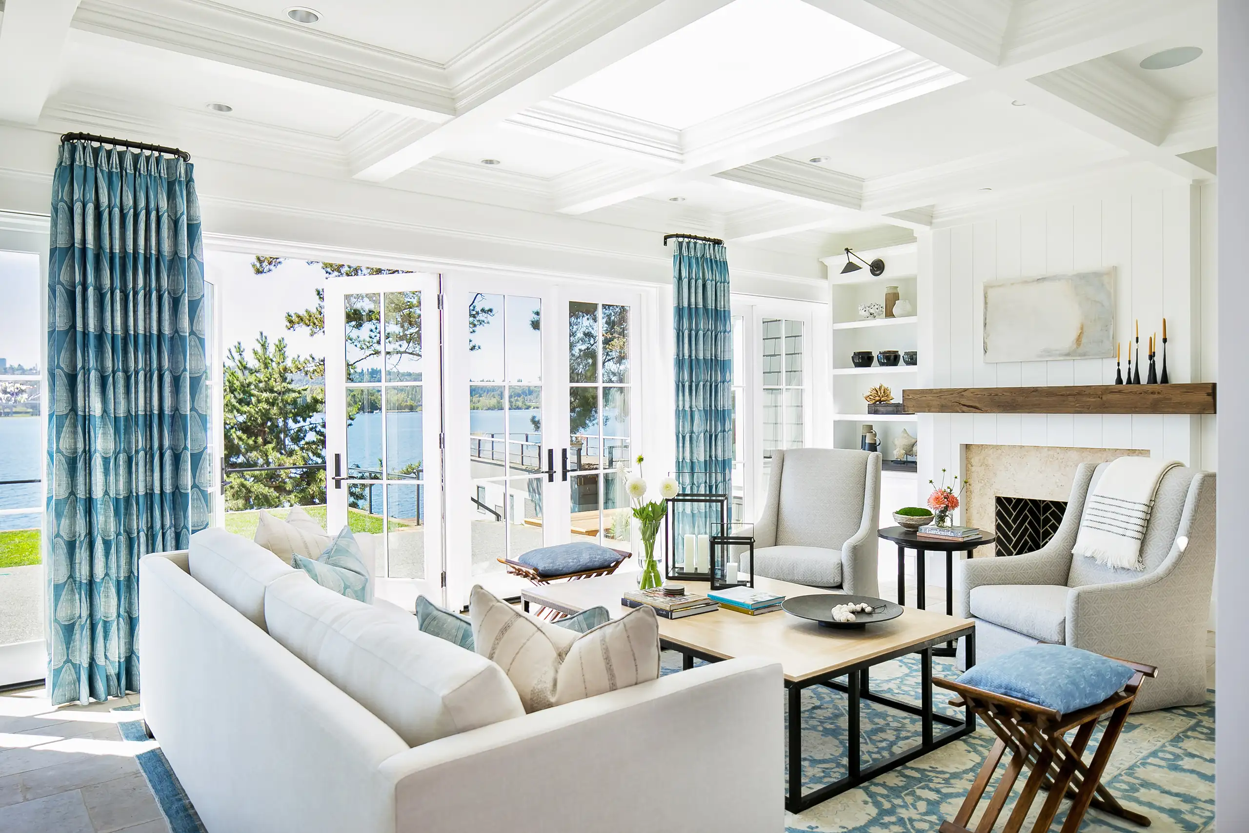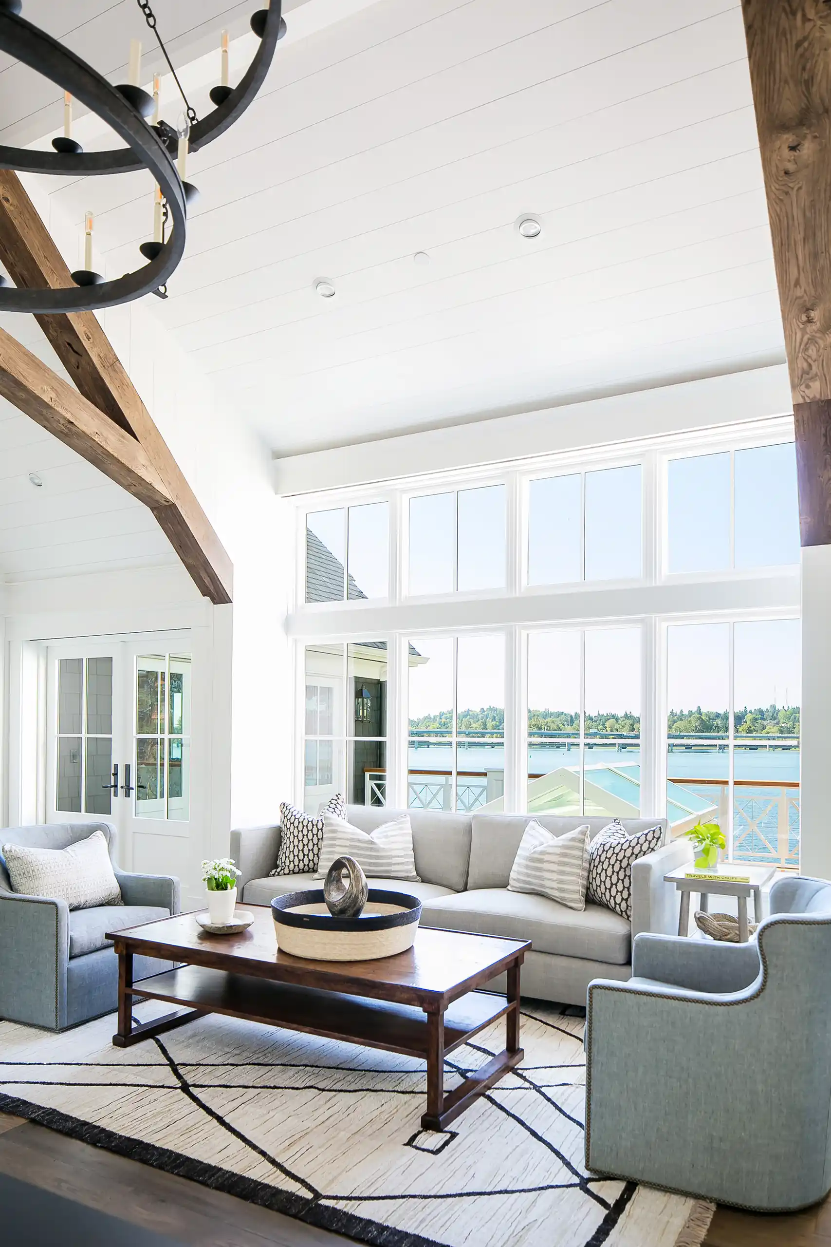 Echoing the graceful lines of East Coast shingle style, this residence harmonizes with the serene lakeside landscape of Lake Washington, located within a peaceful cul-de-sac. The home’s traditional gabled massing radiates a sense of timeless elegance with greying cedar shingle roofs that blend with its natural surroundings. Central to the design is a sunroom, beautifully illuminated by a skylight, which serves as a luminous heart of the home, inviting inside warmth and connection to the outdoors.