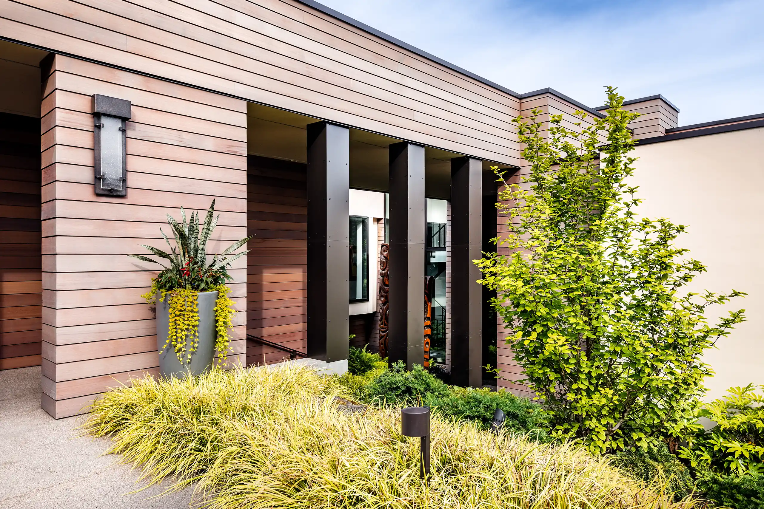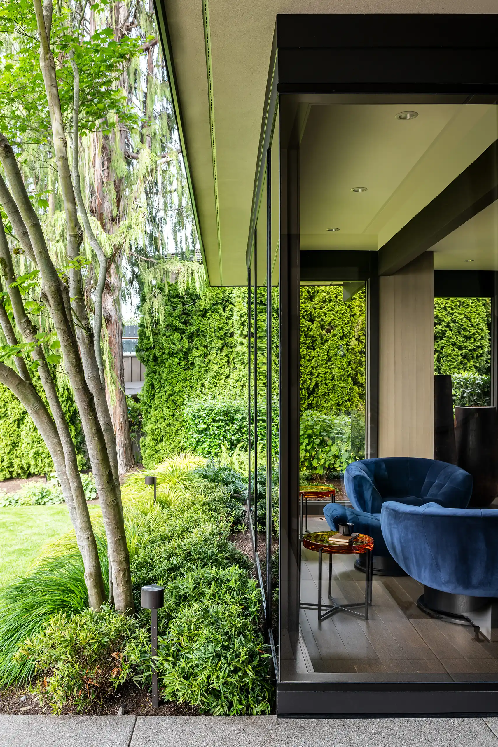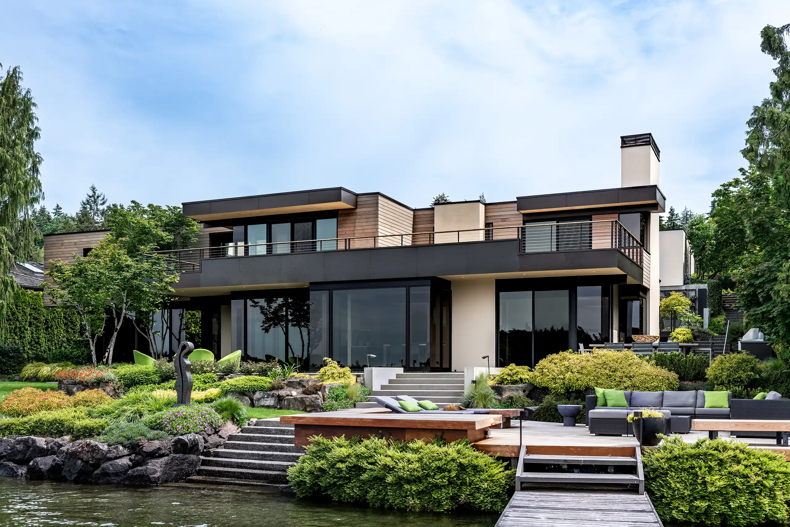 This residence, just steps from the shoreline, artfully harmonizes with its coastal surroundings, inviting the beauty of nature indoors. A comprehensive renovation transformed a previously enclosed layout into a serene, open oasis filled with light. The challenge of integrating seven distinct levels into a seamless flow of spaces was met with thoughtful design that pays homage to the home’s cherished 1970s architectural roots.