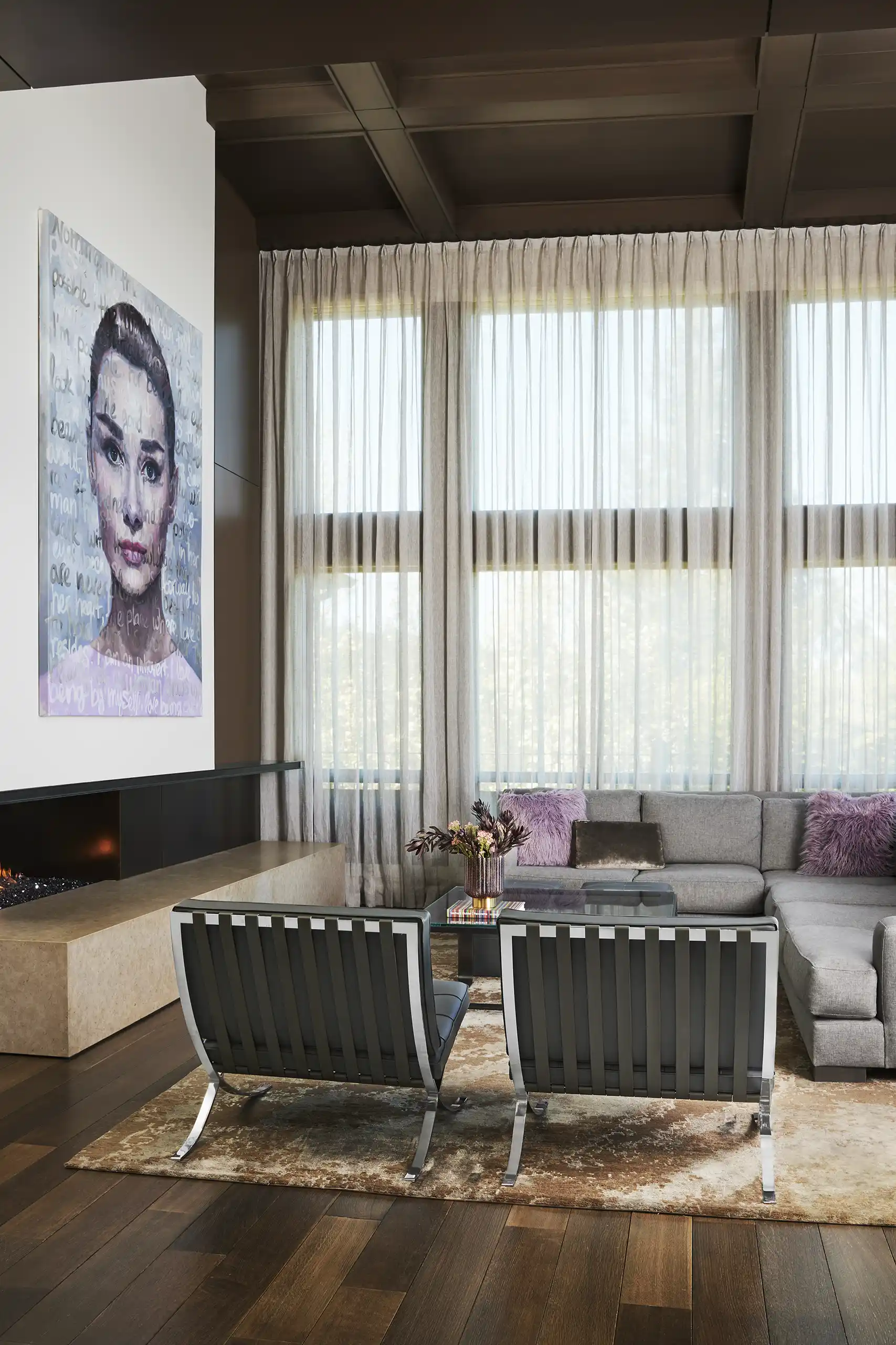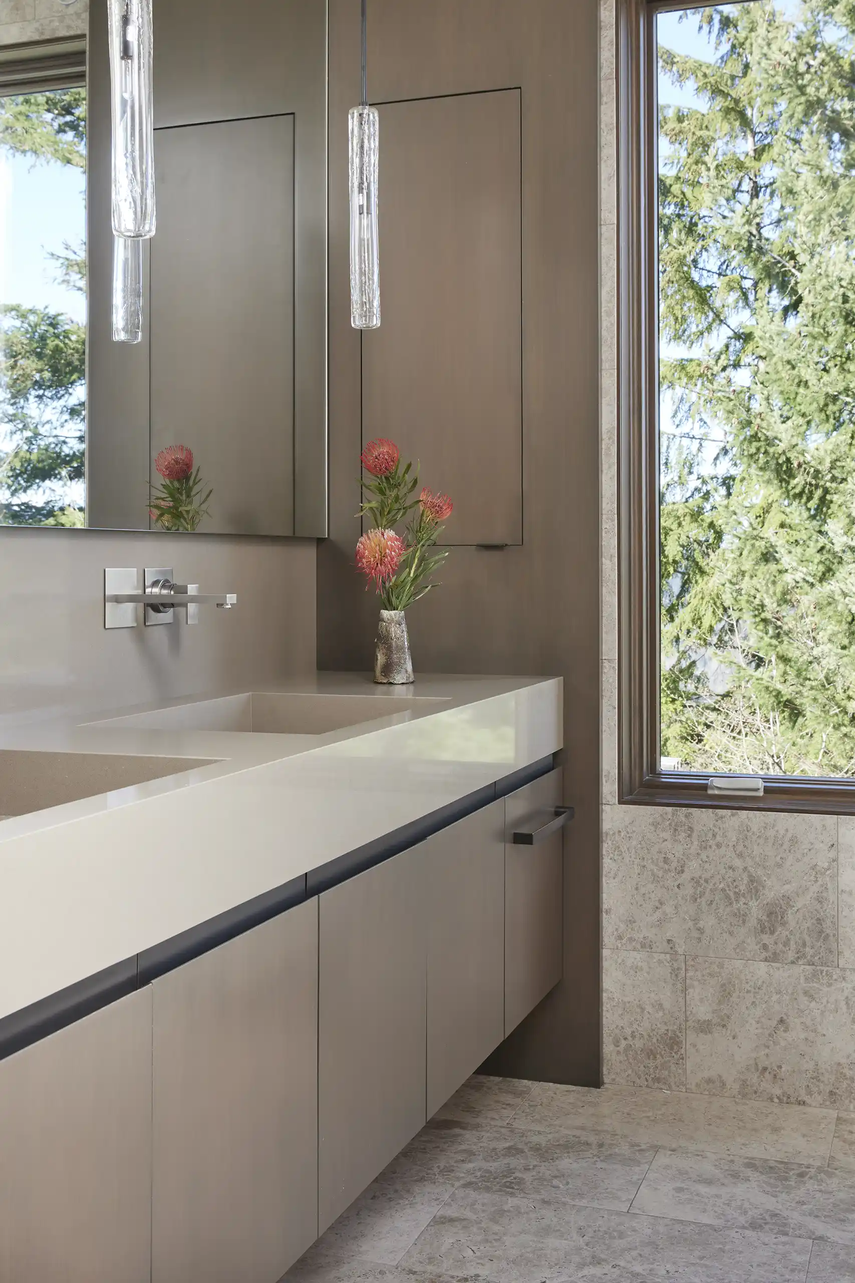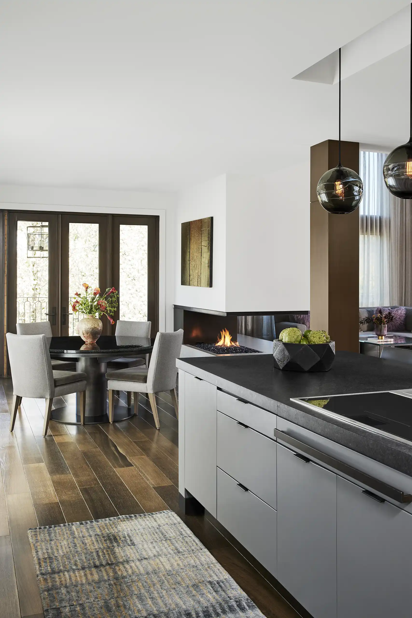 What began as a simple home office renovation evolved into a comprehensive interior remodel of this custom-built Snoqualmie Ridge home. The design celebrates the natural warmth of the existing bluestone, incorporating its earthy tones into the finishes and custom furnishings throughout the space. Warm wood accents, complemented by soothing neutral, and soft hues, evoke a sense of rich warmth and informal elegance. New decorative light fixtures add both ambiance and style. Custom furnishings showcase textures and finishes inspired by the stone’s natural variations, creating a cohesive and inviting environment that seamlessly blends sophistication with the home’s inherent charm.